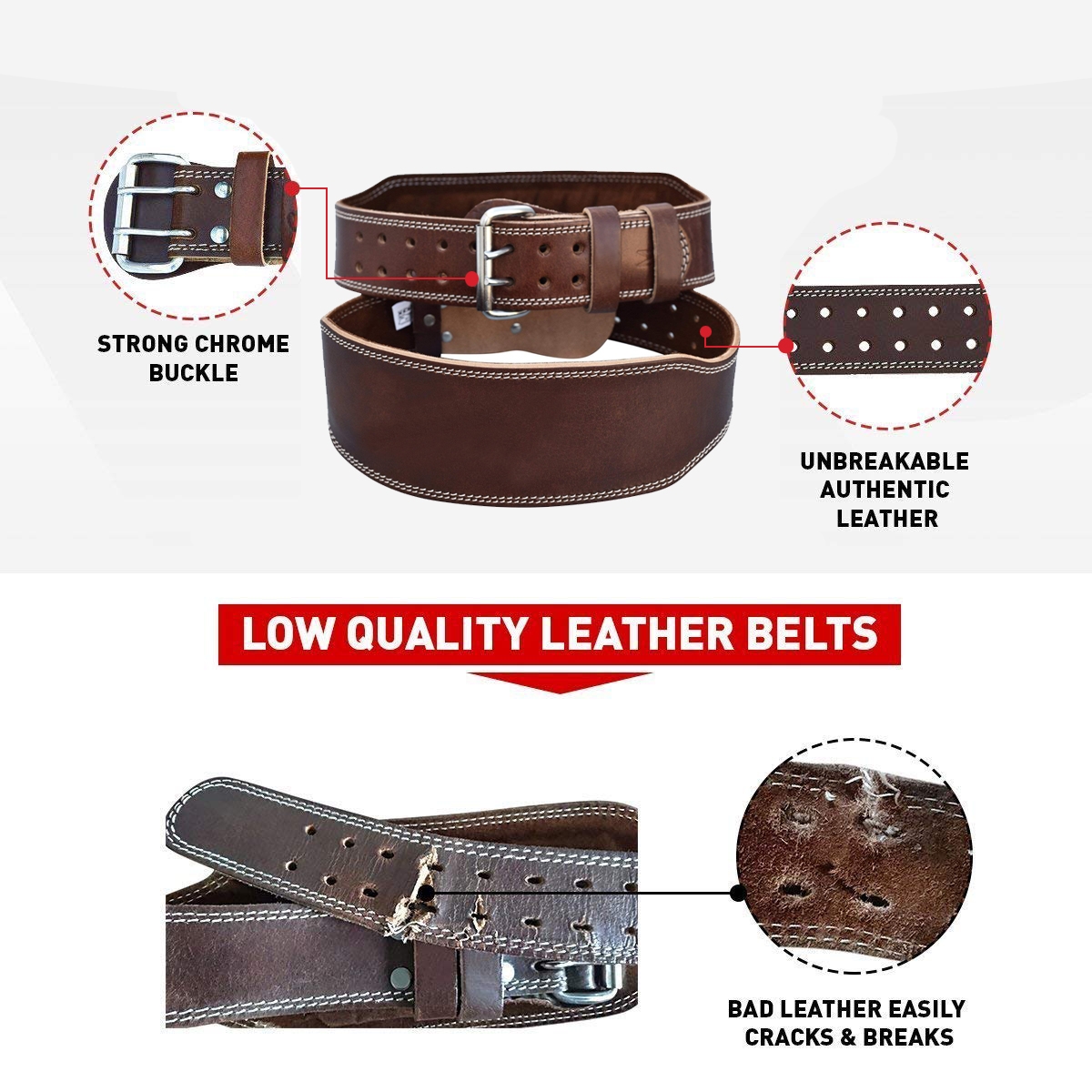 Genuine cowhide weight lifting leather gym belt for back and abdominal support is perfect for power lifting, casual bodybuilding exercise. The wide lumbar area fully supports the base to give you that extra thrust you need during workout. Avoid injury and make the most out of each set with LEOPERFIT old school designed padded fitness belt!