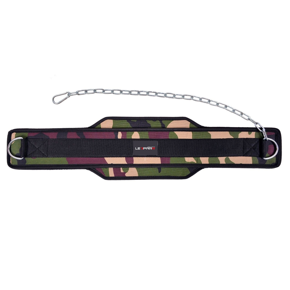 Heavy Duty Neoprene Dipping Belt with Metal Chain for Gym weight lifting Dip Training body work. Featuring a double neoprene back support which makes it real heavy duty belt. There are two Metal D shape loops for the chain to be fasten one side is fixed and second side of the chain features a flip-hook for easy on/off.