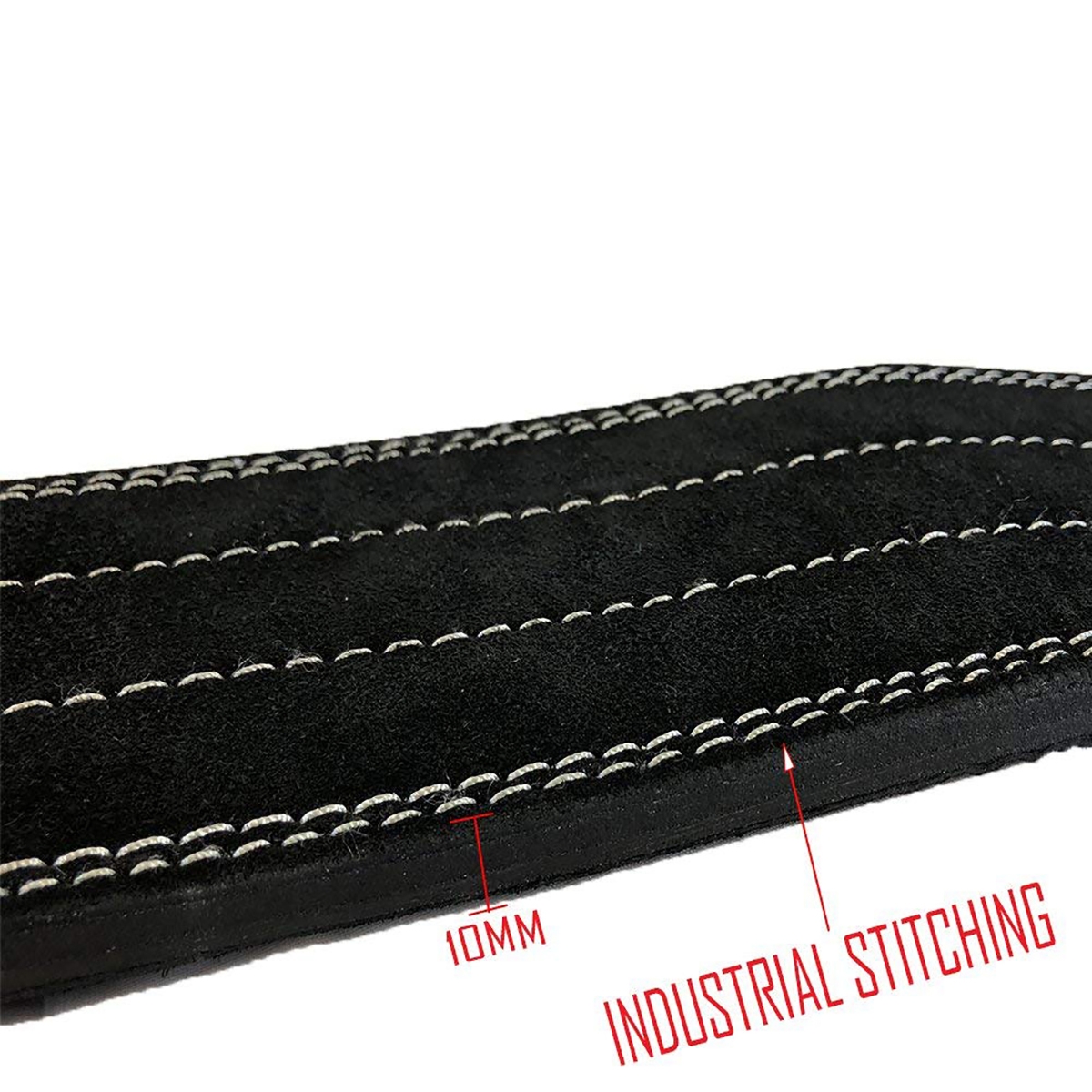 PREMIUM 10MM THICK LEATHER: Our PowerLifting Belt features a 10mm thick, one solid Genuine Buffalo suede leather. It is not layers glued together to make thickness like other sellers. This weight lifting power belt is finished with top quality buffalo leather, fine suede providing non-slip surface.