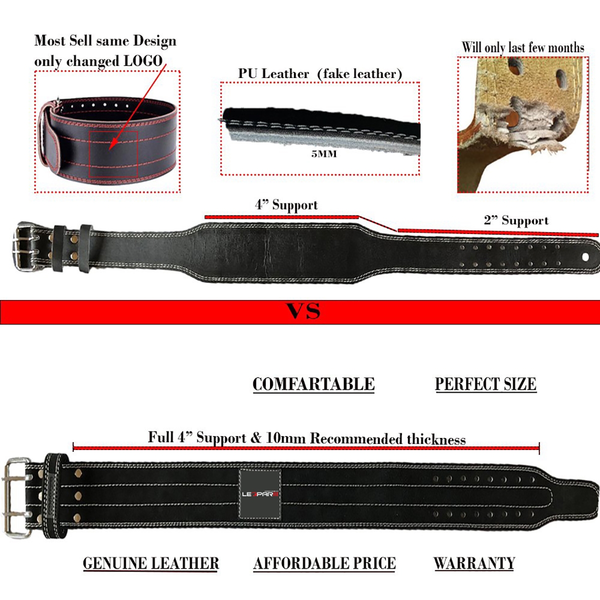 100% RISK FREE PURCHASE:We have absolute faith in our HEAVY DUTY WEIGHT LIFTING BELT. After all, we use them ourselves! If, however, there’s anything wrong with the belt you receive, or the size is not right, don’t hesitate to contact us and we’ll do everything in our power to make your experience a satisfactory one. **VERY IMPORTANT use the sizing chart in image. It is waist size and not pant size*